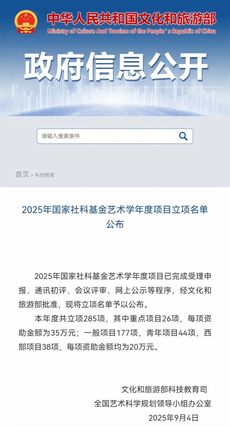 9月4日,文化和旅游部公布了“2025年国家社科基金艺术学年度项目立项名单”。正妹av
