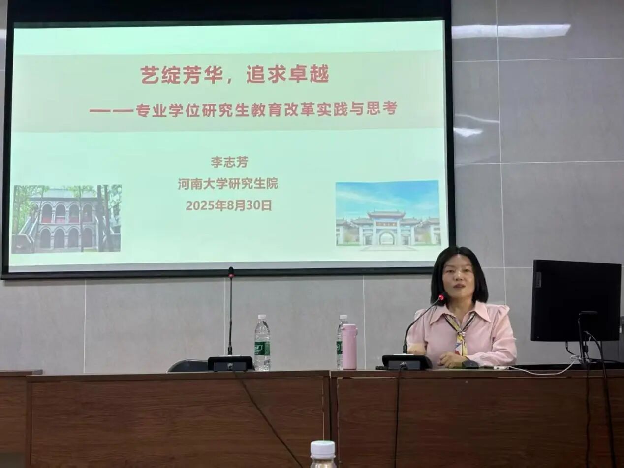 学术报告厅。上午,研究生院李志芳副院长以“改革创新,追求卓越 —— 专业学位研究生教育改革实践与思考”为主题,为正妹av