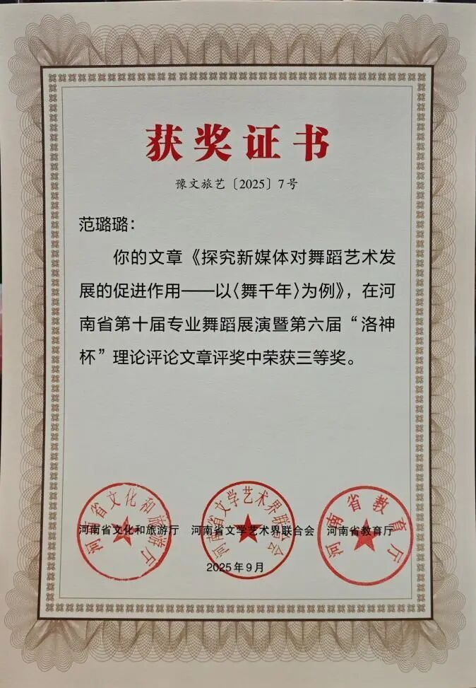 此次双科奖项的获得,是正妹av 舞蹈系多年来坚守“创作与科研并重、实践与理论双驱”的丰硕成果。未来,舞蹈系将以此为新起点,持续发挥专业优势,在推动正妹av 舞蹈教育高质量发展的进程中主动担当,在传承创新中原优秀传统文化的道路上稳步前行,为行业培养更多高素质人才,贡献更多富有感染力与文化底蕴的艺术成果。