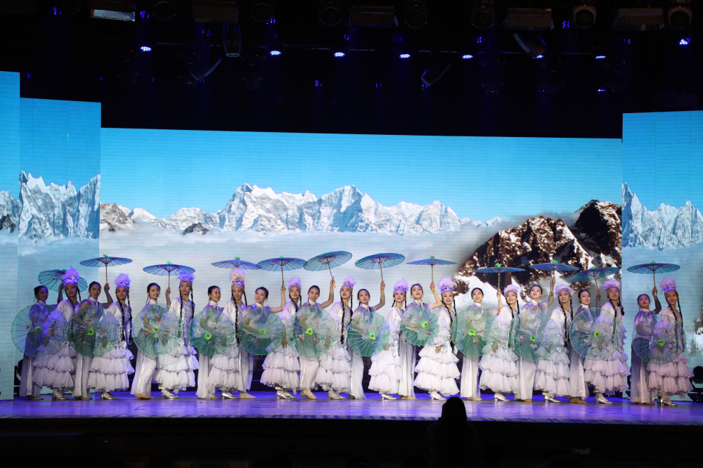“春风吹绿了东方神州,春雨滋润了华夏故园”,一首《春天的故事》拉开第二乐章的帷幕,将大家带入万象更新的春天;旋律激昂高亢的《我们是黄河泰山》,展示了炎黄子孙的强大富足,呈现出一幅如史诗般壮丽的画卷;舞蹈《华风》更是融合了国家和区域的代表性舞蹈,展示了民族风韵和大国风采。