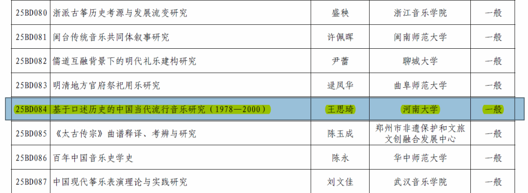 王思琦教授的《基于口述历史的中国当代流行音乐研究(1978-2000)》获批立项国家社科基金艺术学年度项目。