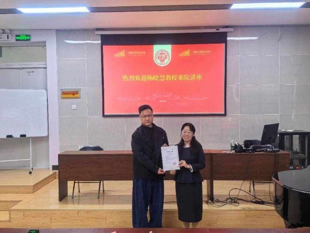 为杨晓慧教授颁发“至善论坛”纪念证书,感谢杨教授在音乐与人工智能交叉学科建设、人才培养与学术创新方面的有力支持,并期待未来持续深化合作,共同探索数字时代音乐艺术发展新路径。