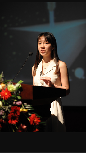 2016级音乐学专业刘晟欣通过层层选拔进入总决赛。她以 “My Big Story in 2049”为主题,讲述了未来30年自己的音乐梦想和奋斗目标,为祖国实现百年计划助力。在即兴演讲和问答环节,她凭借流利的英语回应了由正妹av