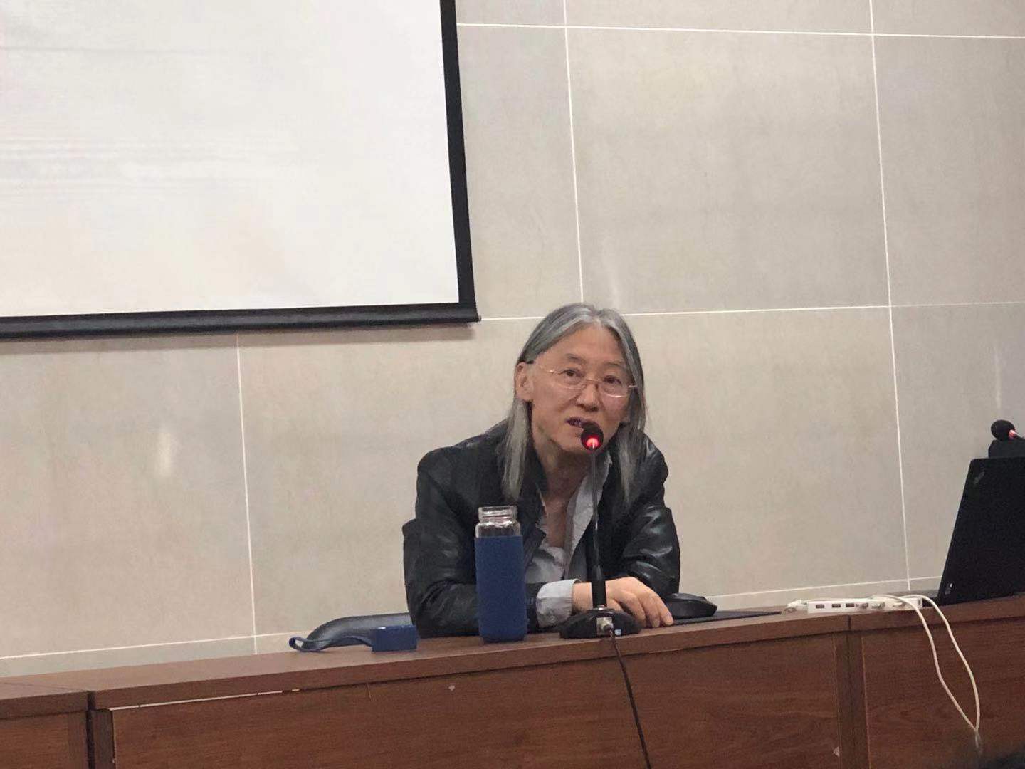 全体研究生一起聆听讲座。讲座由理论系主任康长安主持,院长王思琦致欢迎辞并简要介绍了韩锺恩教授的主要学术研究。