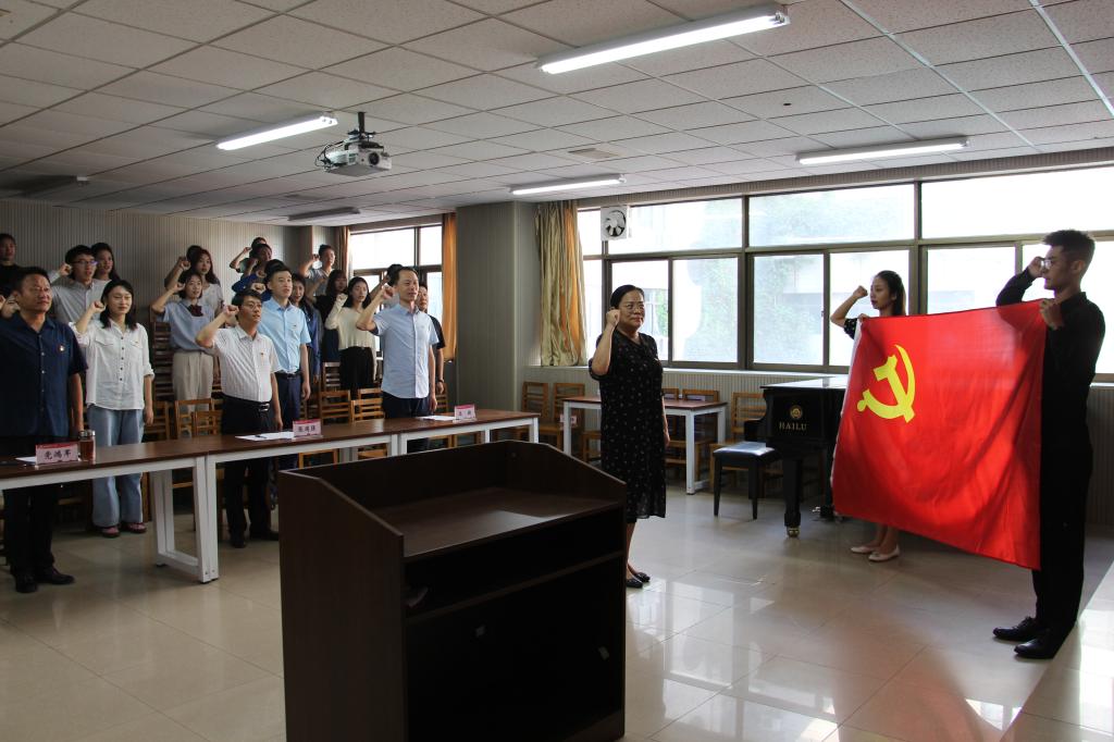 在224教室举行2020年上半年新党员入党宣誓仪式,张国强、党鸿军、王新等院领导和全体支部书记,以及27名新党员同志参加了宣誓仪式,仪式由党鸿军主持。会上,新党员和老党员代表做了发言,张国强代表正妹av