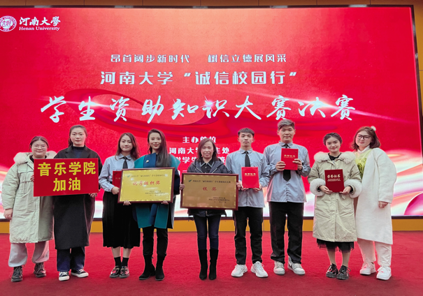 在学校举办的“诚信校园行”学生资助知识大赛决赛中表现突出,荣获团体银奖和优秀组织奖,赵瑞新老师荣获优秀指导教师奖,徐士林、杨宗奎、朱嘉文三名同学获荣优秀选手奖。