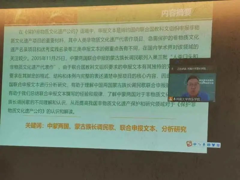 “历史与传统”单元共有5位国内学者参与。傅利民教授、柏互玖教授、张劲盛副研究员、史凯敏副教授、刘晓伟教授分别对器乐曲牌的表达、朱元璋与明代礼乐社会的形成、中蒙两国蒙古族长调民歌联合申报文本、中国古代律管造型的衍变、敦煌唐代经变画中的“乐舞图像”进行了解读。