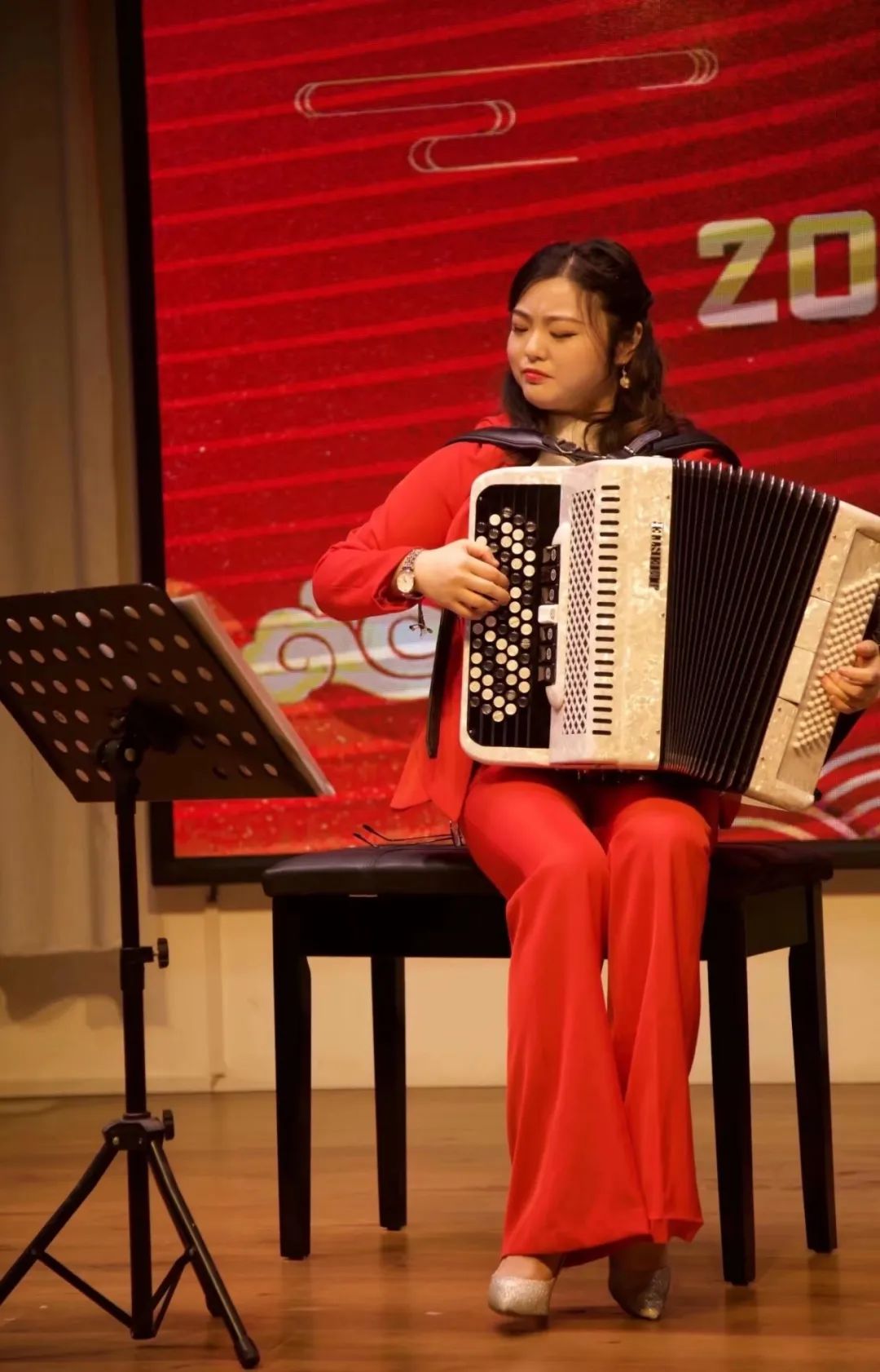 ,手风琴键盘和巴扬专业。现任河南省老干部大学手风琴教师,2018年成立茜茜音乐工作室。