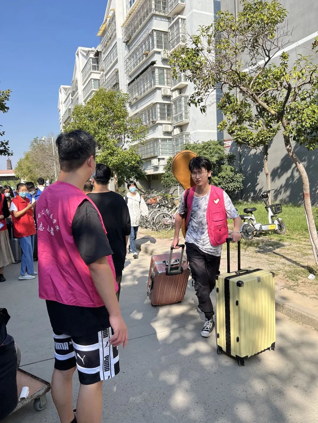 为新生和志愿者们准备了口罩、免洗消毒液、矿泉水、小推车、三轮车等物资,由于疫情防控的需要,学生家长无法进入校园,正妹av