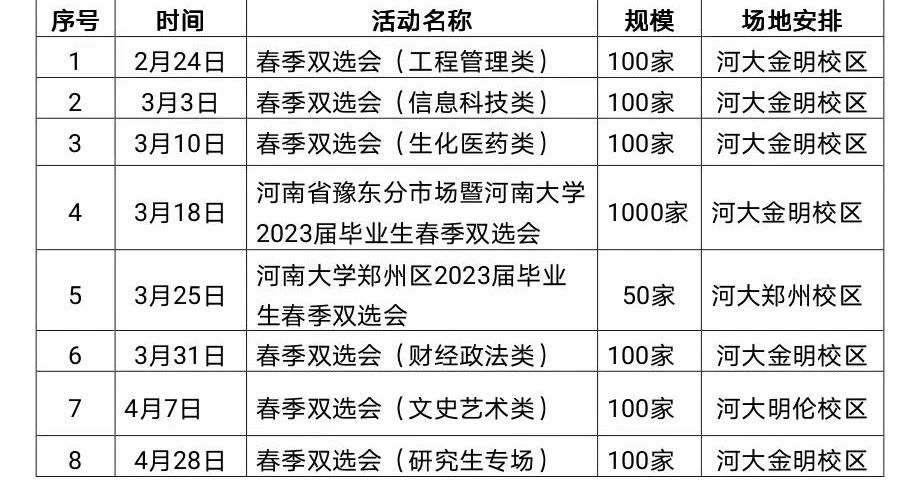 2023届毕业生春季双选会,请登录学校“就业创业信息网”查阅相关邀请函。