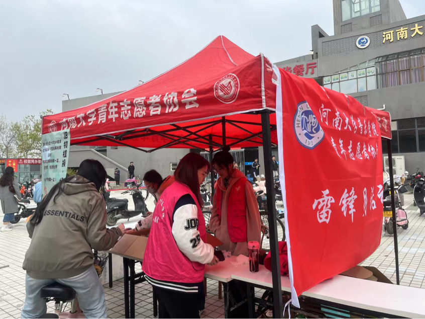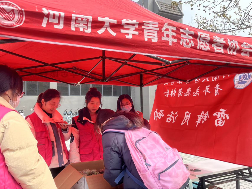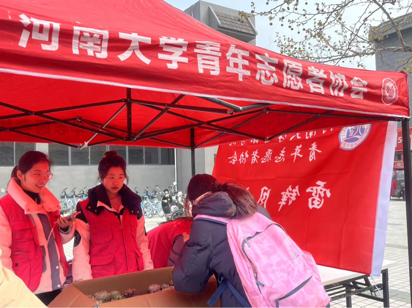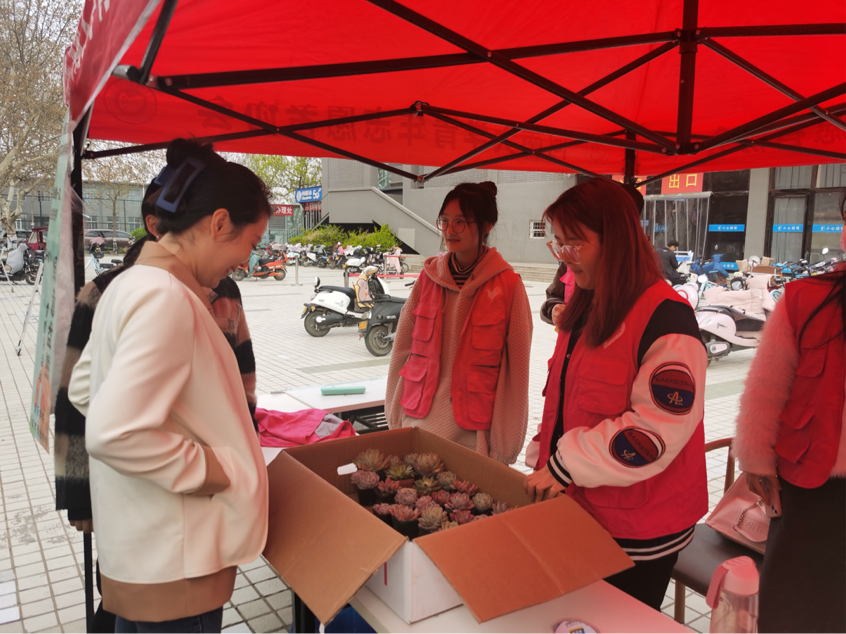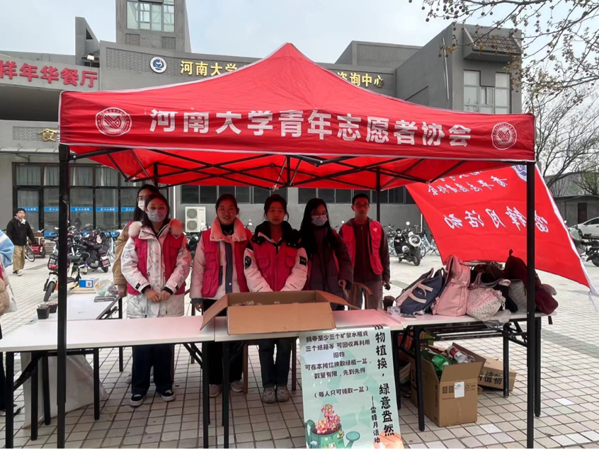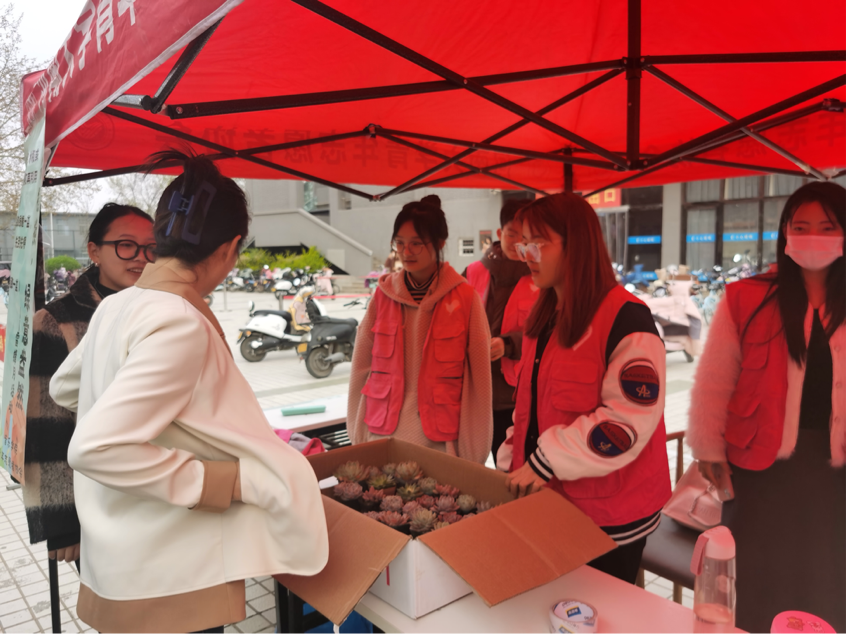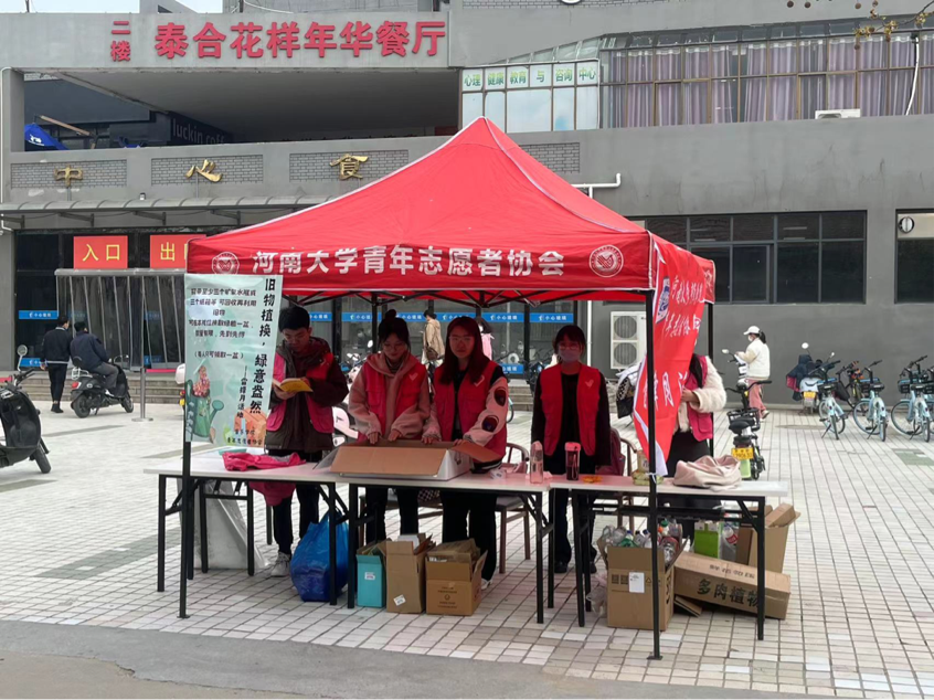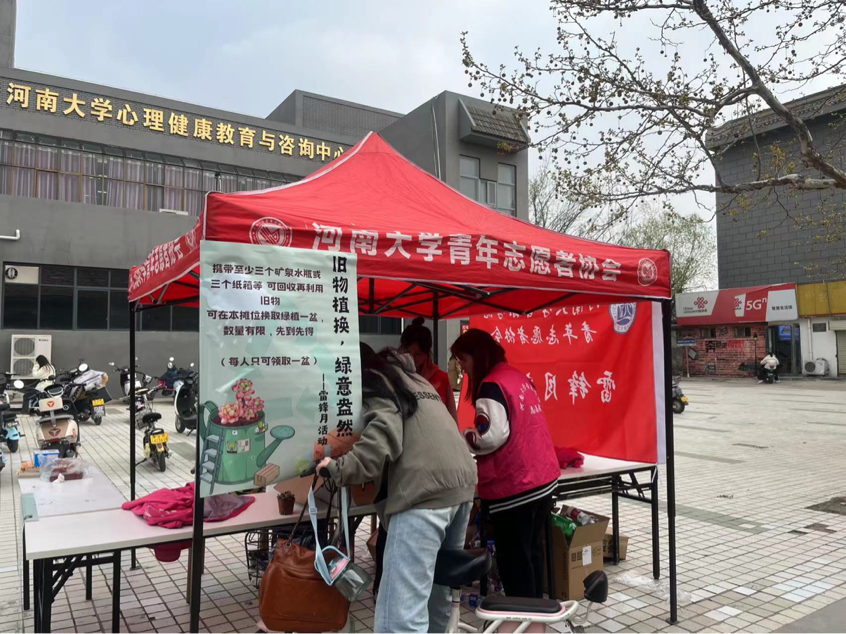 青协在明伦校区中心食堂前举办“以旧物换绿植”活动。
