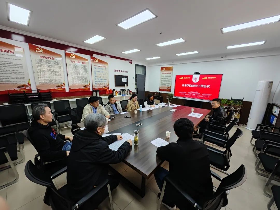 推免研究生科研、奖励等综合素质加分细则》(以下简称《细则》)等文件具体内容进行研讨。由公共艺术教研部主任王聚伍主持,钢琴系、声歌系、器乐系、音乐理论系基层教学组织负责人及教务办参加会议。