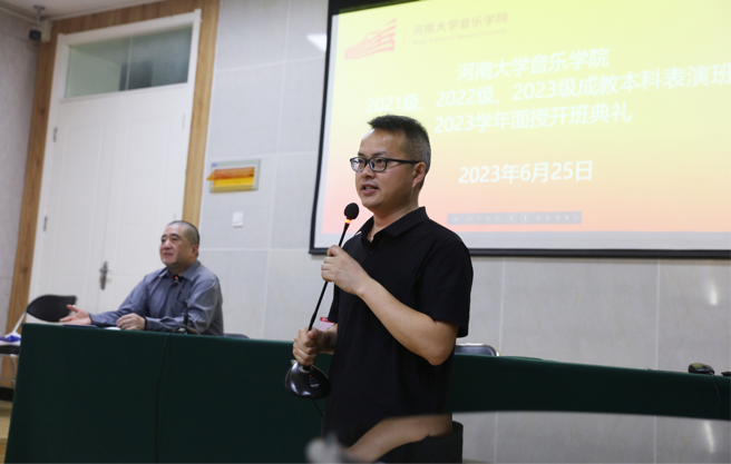 十分重视成教表演专业,严格按照培养方案,构建了专业课程体系,组建了高质量师资队伍。他对成教表演专业学生的学习和发展寄予厚望,希望同学们能够学有所成,为中华优秀传统文化传承弘扬贡献力量。