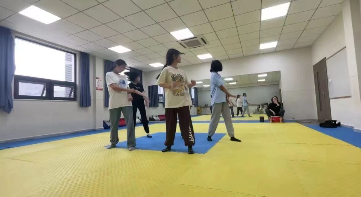 首先,师生一行分组观摩了初中艺术跑班课程,“跑班课程”类似于普通学校的社团课程,包括吉他、舞蹈、歌唱、美术等课程供同一年级的孩子选择,由于大多数年级只有一个班不到30人,因此这些课程的主要形式是分组教学甚至一对一教学,教材多选择孩子喜欢的、感兴趣的内容学习,我们观察到孩子们在课堂上是自由快乐、充满自信的,他们和老师更像朋友,可以随时表达自己的想法,发挥自己的想象力和创造力,孩子们的思维非常活跃和敏捷。