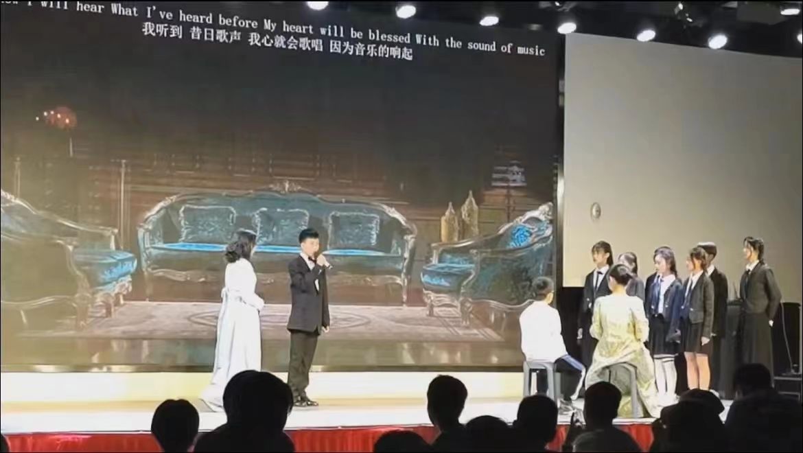 晚上,我们在集餐厅与礼堂为一体的演出大厅,观看了六年级学生表演的80分钟的英文音乐剧《音乐之声》,只见这群十二三岁的孩子们落落大方地站在舞台上,说着流利标准的英文台词,唱着经典动听的音乐剧歌曲,饶有兴趣地表演着自己喜爱的节目,精彩的表演令所有的观众回味良久。
