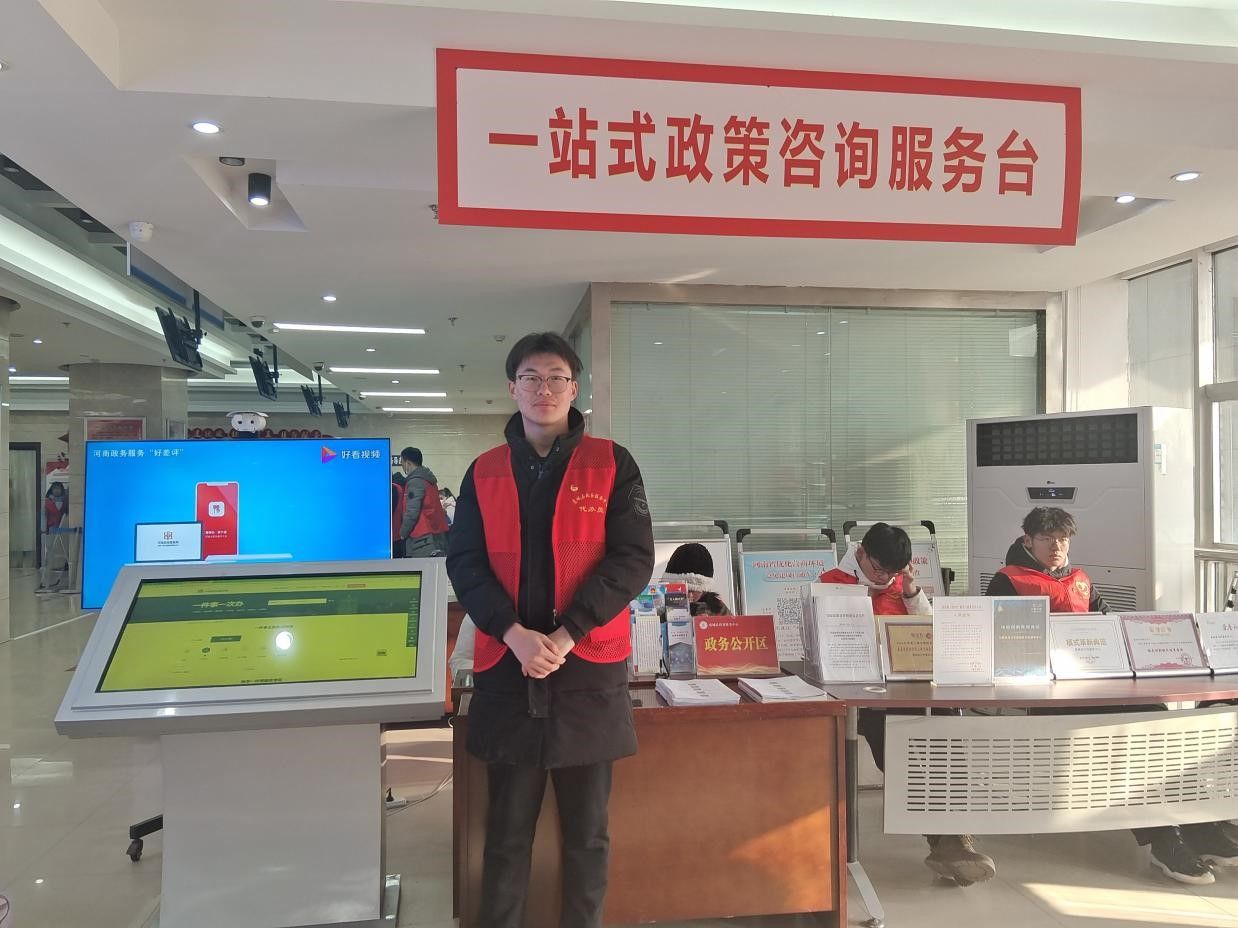 冯一钊说到,今年寒假,在共青团虞城县委的领导下,我与一众青年志愿者们身着红色马甲,在虞城县行政服务大厅,为广大人民群众提供问询指导、秩序维持、服务协助等志愿服务。我们用实际行动和真情温暖旅客,在志愿岗位上体现价值,展现青春的朝气和锐气,在奉献中赢得赞许,为志愿服务工作增添了更多的活力。本次寒假志愿行动,不仅为群众们带来了贴心服务,同时也展现了我们大学生志愿者积极健康的风采,用真心展现了河大学子青年志服务家乡、热爱家乡、回报家乡的热情和激情。