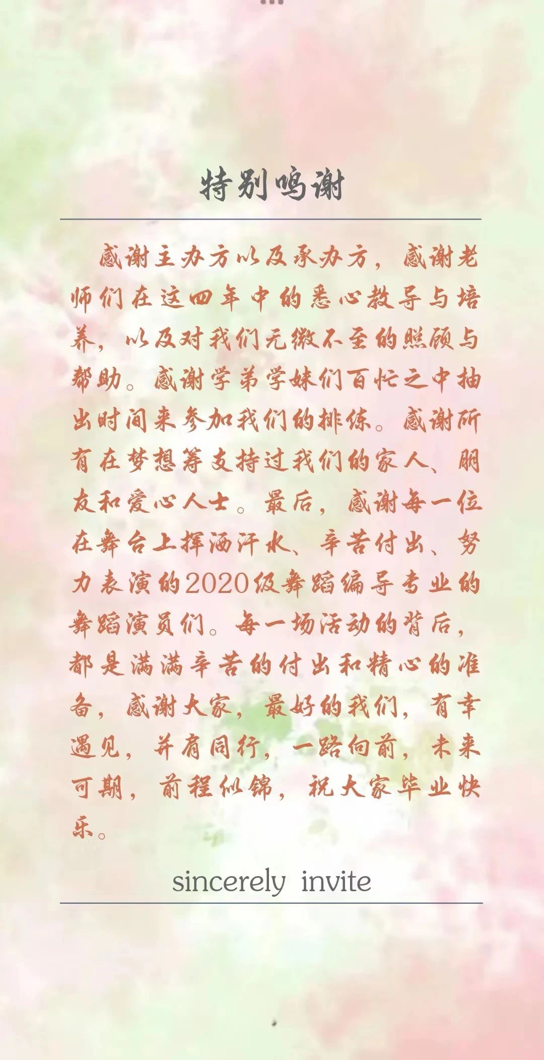 2020级舞蹈编导班级是一支充满活力、团结互助、锐意进取、学风卓越的集体,由25名怀揣梦想的学子组成,其中19位女生,6位男生。分别来自河南、河北、山西三地,共同追求舞蹈艺术的梦想。每个人都为班级的荣耀与发展倾尽全力,共同书写属干我们的青春华章,追寻那翩翩舞蹈之梦。