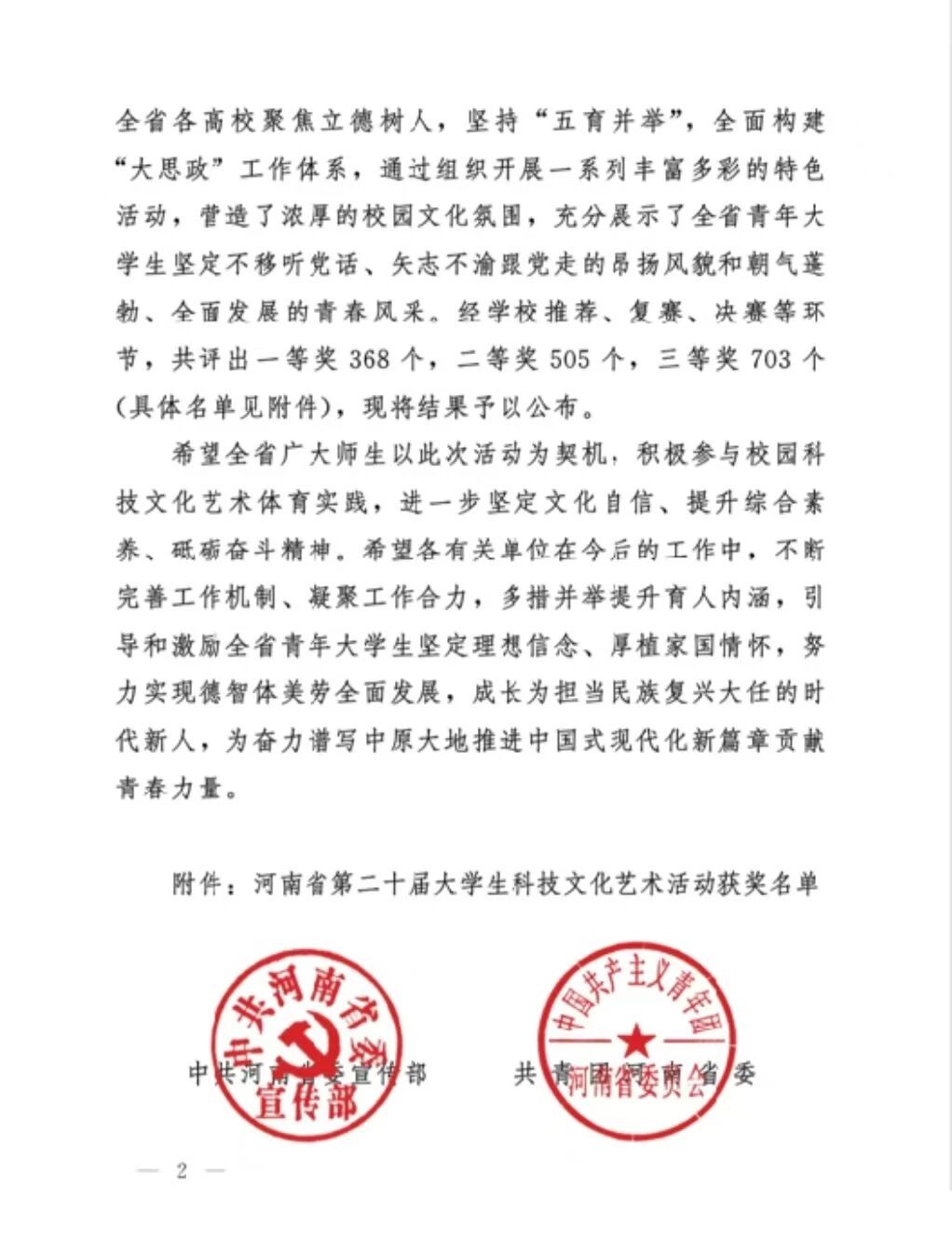 喜报 | 正妹av 在河南省第二十届大学生科技文化艺术节喜获佳绩 正妹av