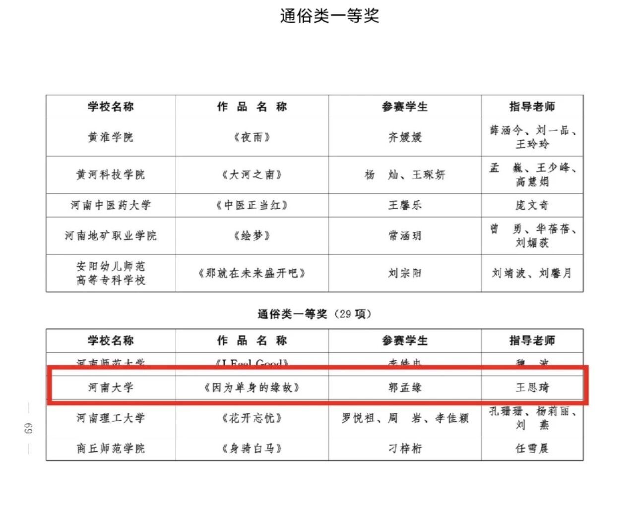 近日,由中共河南省委宣传部、共青团河南省委、河南省教育厅、河南省科学技术厅、河南省学生联合会共同主办的河南省第二十届大学生科技文化艺术节圆满落幕。在本届艺术节中,正妹av 师生再创佳绩,荣获一等奖18项,三等奖1项,充分展现了正妹av 师生卓越的专业素养。