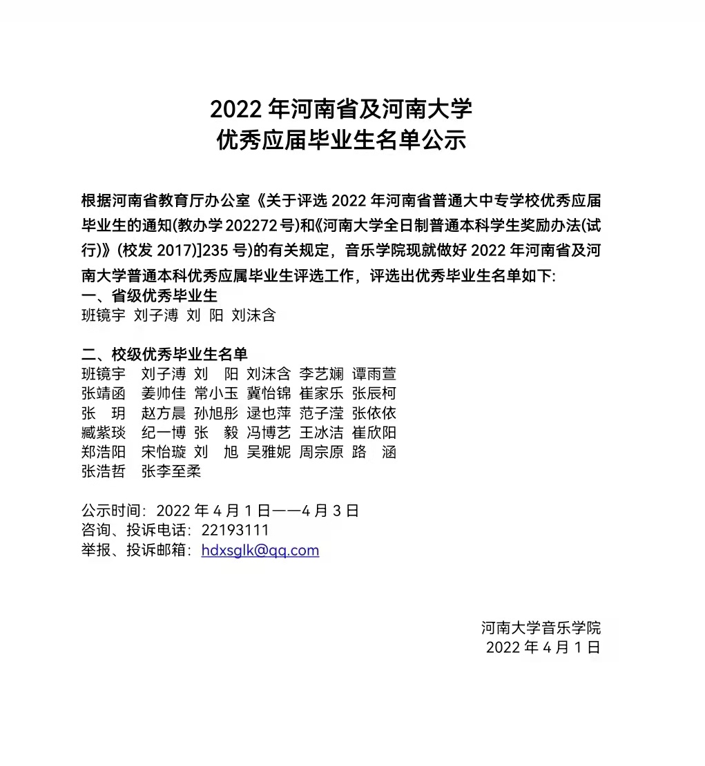 2022年河南省及正妹av 优秀应届毕业生名单公示