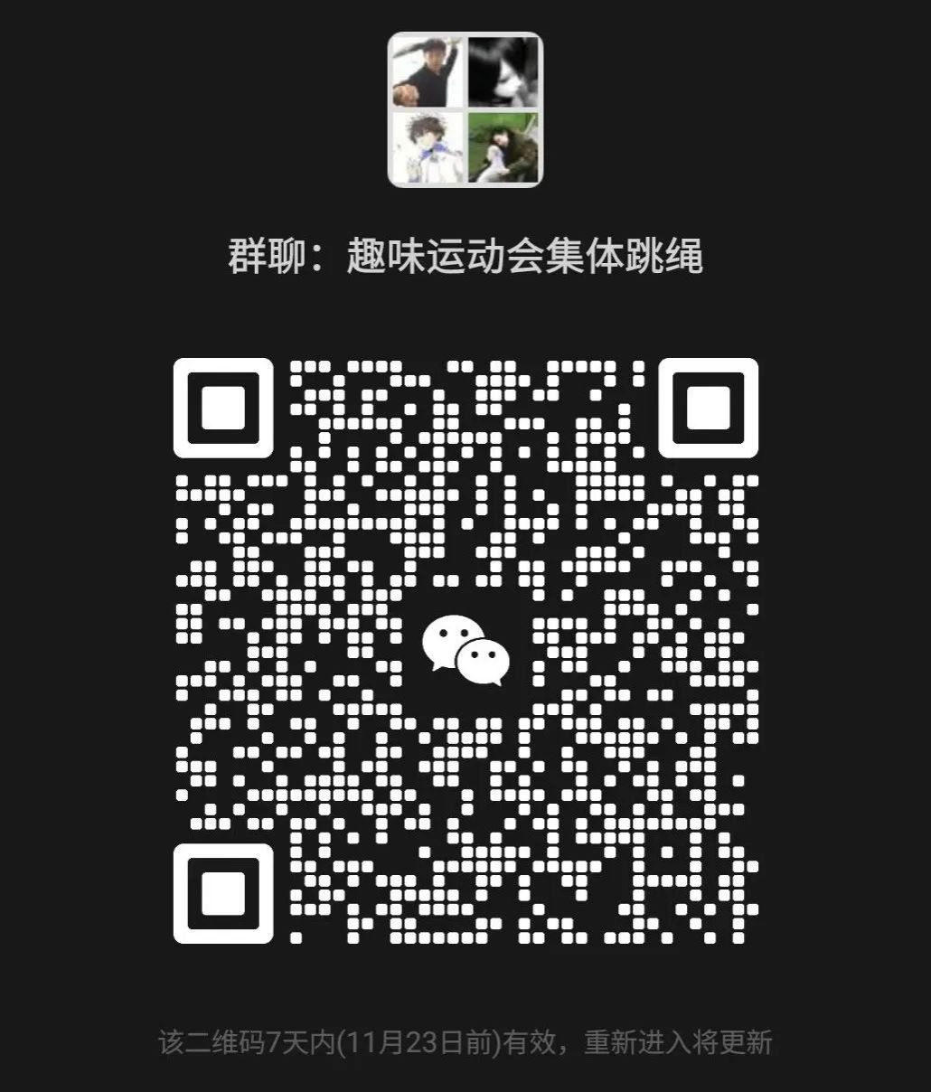 活动规则:(1)参赛人员自行组队,每支队伍10名队员。每个代表队自行组织队员参赛,其中2名为摇绳运动员。比赛采用限时2分钟,规定时间内计算成功跳绳次数,根据次数排定名次。