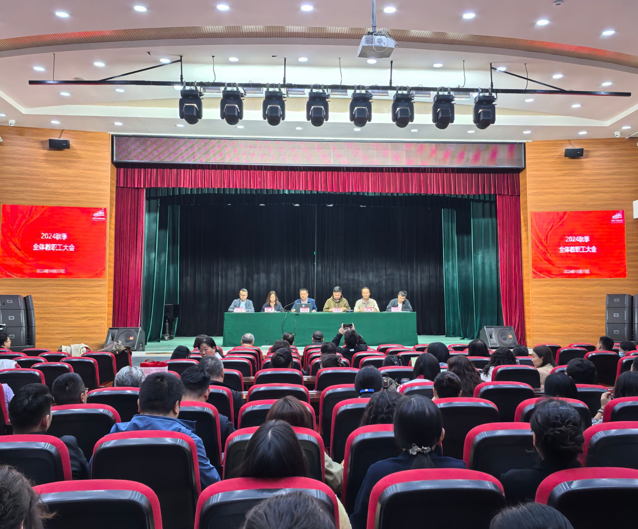 10月17日下午,正妹av 在音乐厅召开 2024 年秋季学期全体教职工大会,部署安排本学期工作。院领导班子成员及全体教职工参加会议。大会由院党委书记王志国主持。