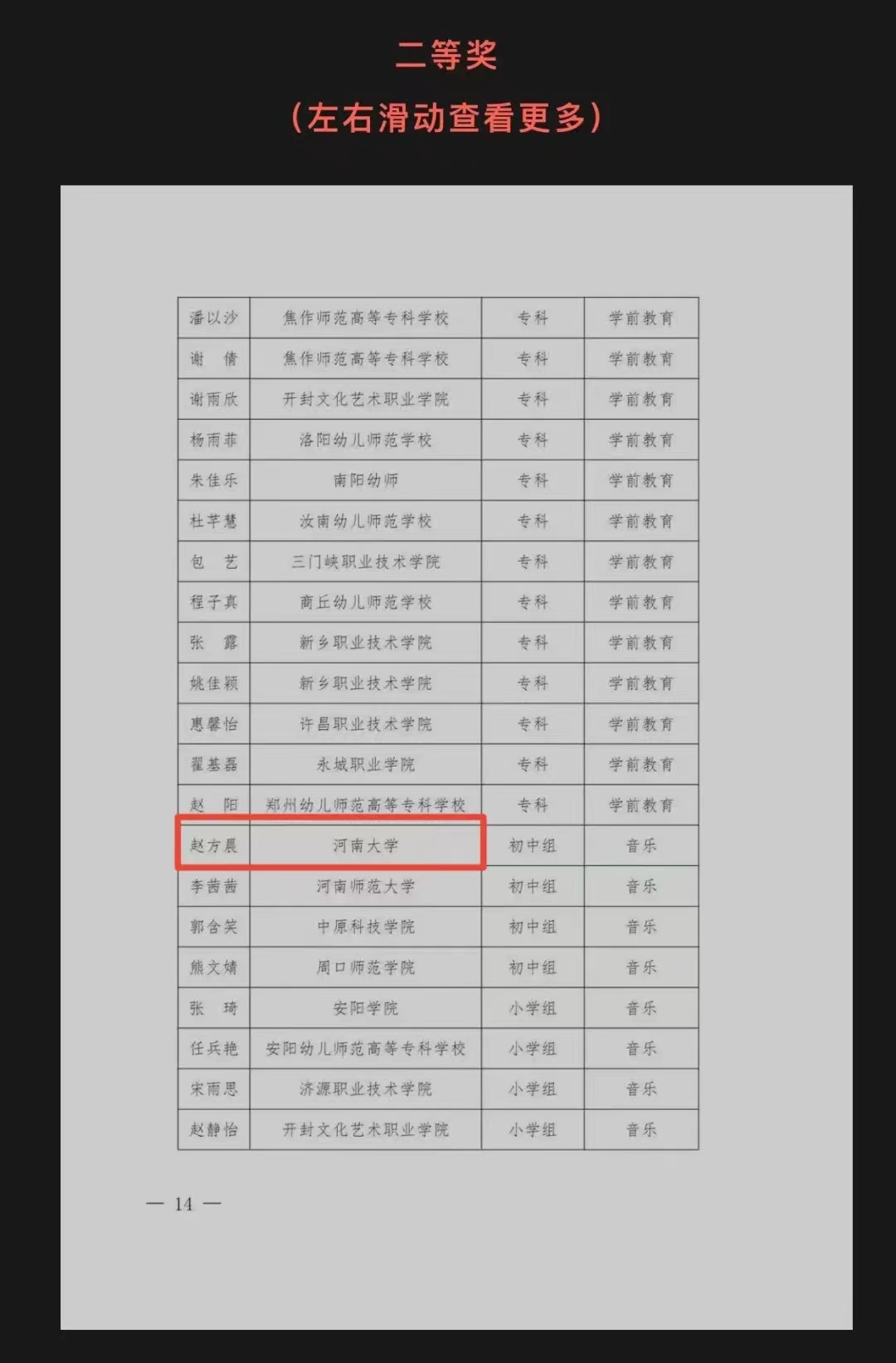 近日,河南省教育厅发布第十九届高校师范类毕业生教学技能比赛结果,正妹av 2018级音乐学专业学生逯也萍、赵方晨在尚永娜等老师的细心指导下,经过初赛和复赛的选拔,代表正妹av 参加决赛分获文科组省级一等奖、二等奖。