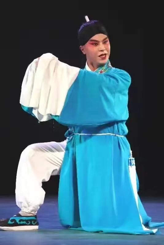 发展的亮点和特色,一定要重视戏曲教学师资和硬件设施的建设,要全力做好参赛学生的各项保障工作。从接到通知到提交视频仅有一个多月的时间,时间紧任务重,在导师王凯歌的详细指导下,反复商量,最终选定了豫剧《西湖公主》一折。这出戏唱功、做功并重,可以说是豫剧小生行当中的代表剧目。为了练好这出戏,靳亚军起早贪黑,早上练基本功,上午去琴房练唱,下午练身段走戏,晚上在琴房练习唱腔。整个备赛过程中,由于疫情原因,师徒不能相见,但是王凯歌老师经常半夜三更打电话指点,一招一式、唱腔吐字,均体现出师生二人的心血和智慧。此外,靳亚军受到了导师王凯歌、梁小斐老师、聂明老师的细心指导和表演专业多位同学的帮助,在大家共同努力下完成了节目排练和录制。