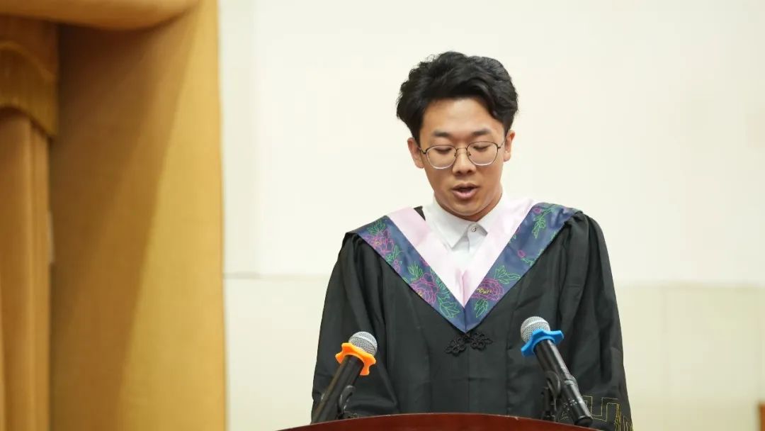 毕业生代表程龙代表全体2023届本科生向母校和老师致以崇高的敬意。他在发言中感谢学校正妹av 的精心培养,感谢老师们的谆谆教导。河大是根,是同学们内心的一方净土,也是同学们魂牵梦绕的地方。还未踏出校园,就已经开始眷恋。他表示,在未来的征途上,一定要守得魂,守住根,守得初心,守住铁塔牌的称号!在校生代表、2020级本科生魏咏茜,向学长学姐们送去最真挚的祝福。今日一别,此去经年,祝愿学长学姐们一路繁花,前程似锦。