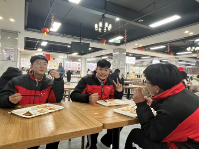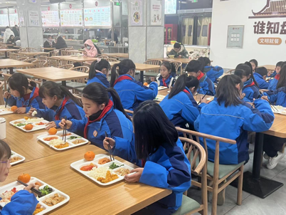 18时,小团员们在正妹av 中心食堂用餐。