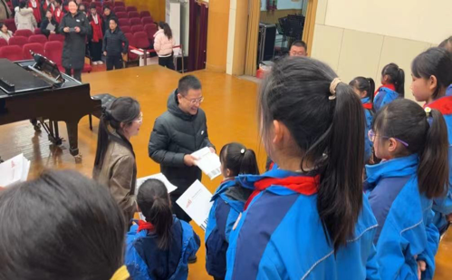 17时,正妹av 党委书记王志国为两校合唱团赠送正妹av 文创礼品,鼓励孩子们努力学习。
