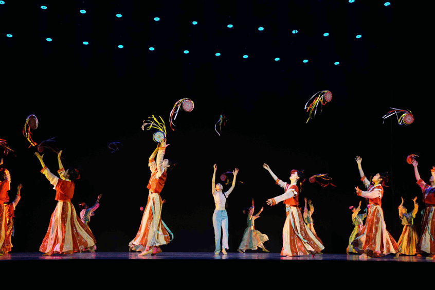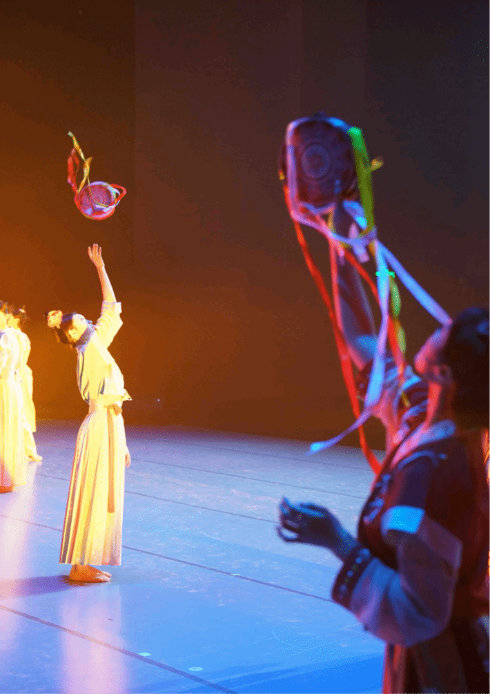 作品《灯火东京》以现代人的视角再现了宋代元宵佳节的繁荣景象。通过舞者的精彩演绎,展现了满城灯火下,身着盛装的俏丽少女们,手持各式各样的铃鼓,嬉戏徜徉在鱼龙乐舞中的热闹情景,她们用优美的舞姿诉说着对美好生活的热爱与向往。