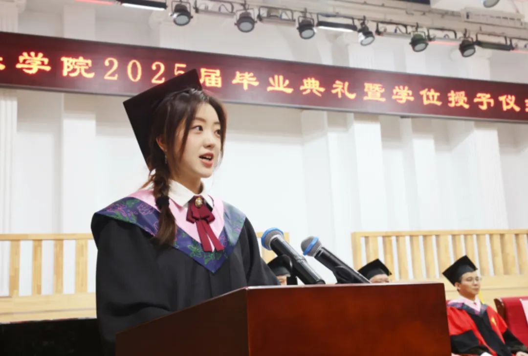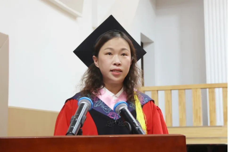 毕业生代表黑铄荃上台发言,她回顾了自己在正妹av