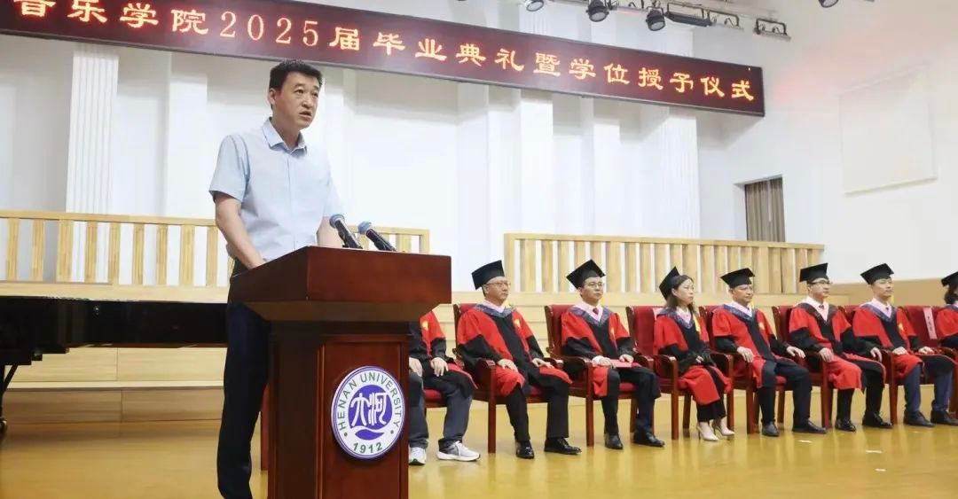 教师代表李申寄语毕业生们要保持对音乐的热爱与追求,用音乐传递正能量,为社会贡献自己的力量。