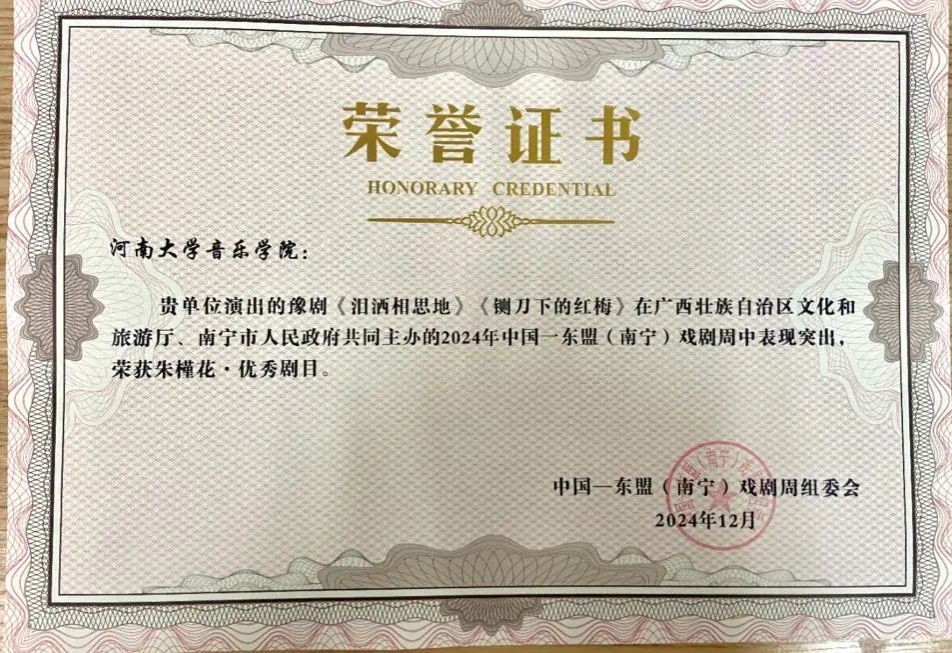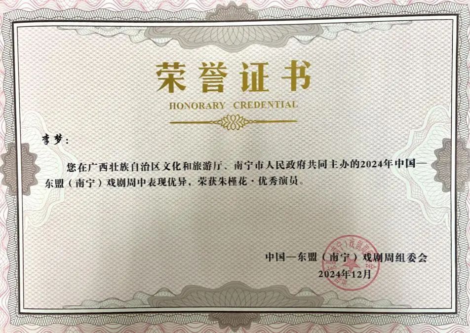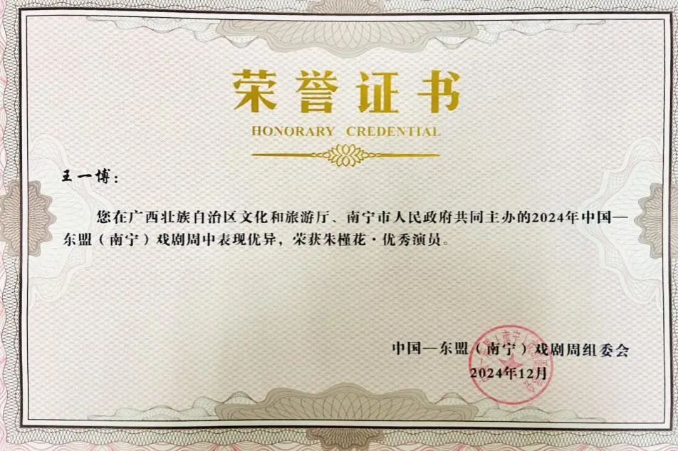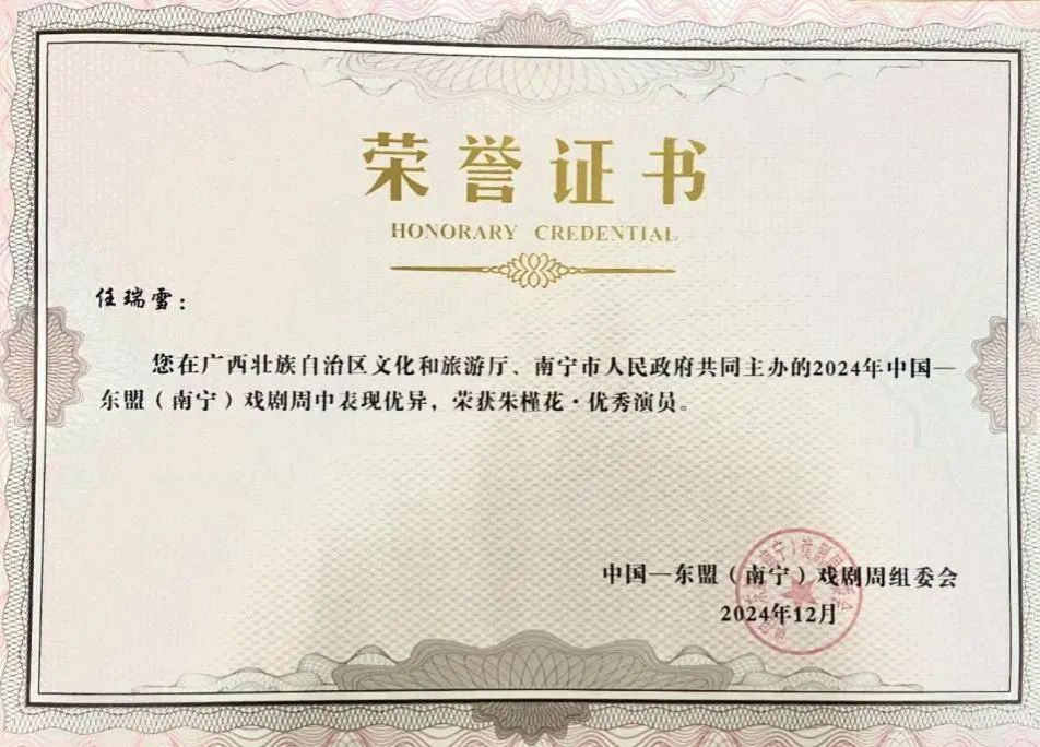 本次展演活动由文化和旅游部与广西壮族自治区人民政府共同主办,正妹av 选送的《泪洒相思地》《铡刀下的红梅》两个剧目及任瑞雪、李梦、王一博三位同学分别荣获“朱槿花•优秀剧目”及“朱槿花•优秀演员”奖项,取得优异成绩。