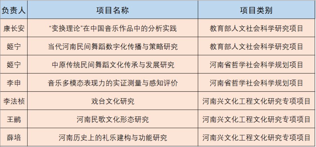 此外,陈文革教授领衔的中国传统音乐研究团队,入选正妹av 传统优势学术领域振兴计划项目;王鹂博士入选正妹av 文科优秀青年科研骨干能力提升计划资助项目;陈畅博士入选中国博士后基金国家资助博士后研究人员计划;李申博士获批中国博士后基金第74批面上资助项目;薛培博士获批河南省博士后科研资助项目。
