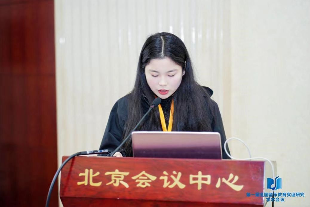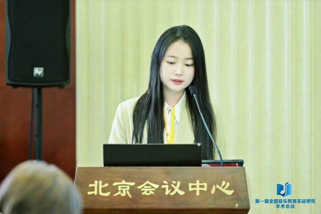 2023级音乐与舞蹈学专业硕士研究生,师从李申老师,研究方向为音乐教育学。在会议中的发言题目是《联觉体验对音乐审美能力的影响:一项基于大学生群体的实证研究》。研究在经过8周的联觉体验教学干预后,得出实验组在审美体验总分上显著高于对照组。联觉体验能够提升音乐审美能力,并发现联觉体验教学也能够显著提升学生的音乐感知、情感和理解能力,尤其是感知能力。此外通过半结构访谈得出,学生倾向于引导探索的教学方式,这能激发他们的思考和探索精神,增强学习主动性和成就感。