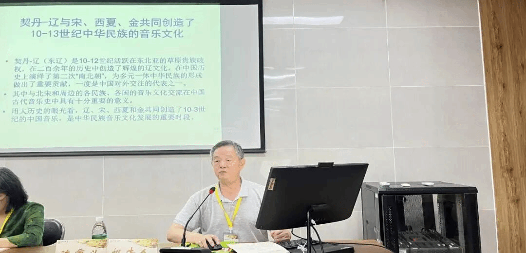 陈秉义教授以《从民间收藏部分古琴图像看契丹—辽对中原古琴音乐文化的学习》为题进行发言,其内容分为四个部分。首先,他介绍了宋朝临摹晋本《斫琴图》与两种不同的《契丹斫琴图》,指出契丹—辽时期的《斫琴图》见于《考工记》图卷,大多反映古琴制作流程。同时,通过存世辽塔束腰壶门伎乐砖雕、石雕及民间收藏,发现契丹—辽在古琴艺术方面积极借鉴中原文化。第二部分是对民间收藏《契丹斫琴图》及线描斫琴图进行的音乐学分析。他指出《契丹斫琴图》存在纸质长卷与木盒装书两种形式,分析表明契丹—辽在制琴工艺与流程上沿袭汉族技法,甚至在某些方面超越已知的《斫琴图》所载流程。第三部分聚焦存世契丹—辽古琴图像,通过对民间收藏的契丹乐器演奏法书盒木版画、辽代伯牙与铜镜图像,以及琴歌《蝶恋花》等材料的分析,揭示出契丹—辽对中原汉族音乐文化持积极引进与虚心学习的态度。第四部分进一步强调民间收藏音乐图像对于研究契丹—辽学习中原音乐文化具有重要参考价值。陈教授指出,民间收藏作为我国文物收藏的重要组成部分,随着辽史研究的深入,大量相关文物逐渐面世,应加强对这些文物的系统管理、保护研究,防止流失,从而为10—13世纪辽、宋、西夏、金音乐史的整合研究提供更多实证。