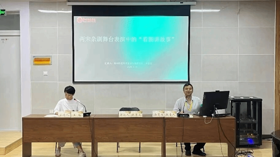 郑州师范正妹av 音乐与舞蹈正妹av 余复生副教授以《两宋杂剧舞台表演中的“看图讲故事”》为题,探讨两宋时期杂剧表演中“看图讲故事”这一独特形式的起源、形态及其在戏曲史中的意义。他指出,该形式在文献中又称“看图讲诵”或“看图讲唱”,既往研究多偏重于说唱艺术层面,而对其在戏曲艺术中的功能与表现关注不足。余老师借助多幅杂剧图像资料如洛阳偃师酒流沟砖雕、关林庙宋墓人物砖雕、四川宝林镇杂剧石刻等指出,杂剧人物常为手持立轴画的现象,并引发对其功用的深入探讨。此外,通过比对元代壁画如运城西里庄元墓壁画和永乐宫壁画中的类似图像,他提出这些画轴可能用于“看图讲故事”,甚至可能是唐代变文讲唱形态在宋元戏曲中的延续。