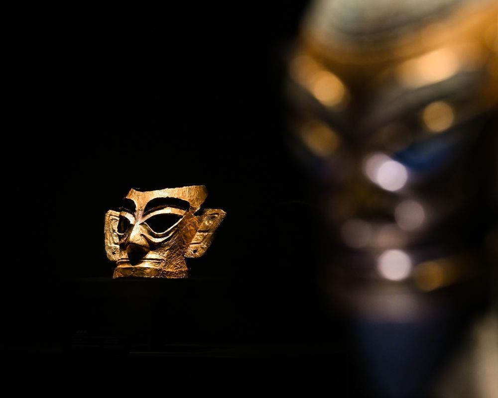 △三星堆博物馆新馆展出的金面具