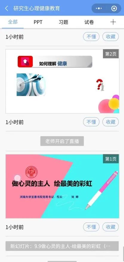 讲座中,刘老师为新生讲解了健康的标准,科学的健康概念,如何认知心理。带领学生体验认知心理健康10标准;探索心里舒适区;建构心理成长力;收获心里阳光度。教会同学们如何正确的应对心理问题。
