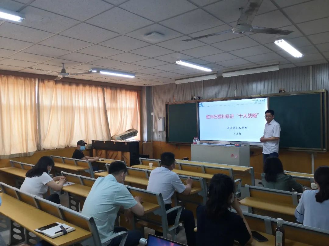副教授、硕士生导师卜万红作了题为《整体把握和推进“十大战略”》的报告。卜老师对我省第十一次党代会的主题进行了详细解读,并对“十大战略”进行了深入分析。指出十大战略和我省 “谋振兴、促崛起、求跨越、争出彩”的30年发展主题主线一脉相承,同国家和省委对到本世纪中叶的建设规划遥相呼应,为河南省定下了九个清晰的中期发展目标,为我省补短板、强基础、扬优势指明了方向;从整体布局上看,十大战略有助于稳定传统动力、寻找新动力,既坚持传统优势提升,又着力寻找新增长点,确保高质量建设现代化河南,高水平实现现代化河南。