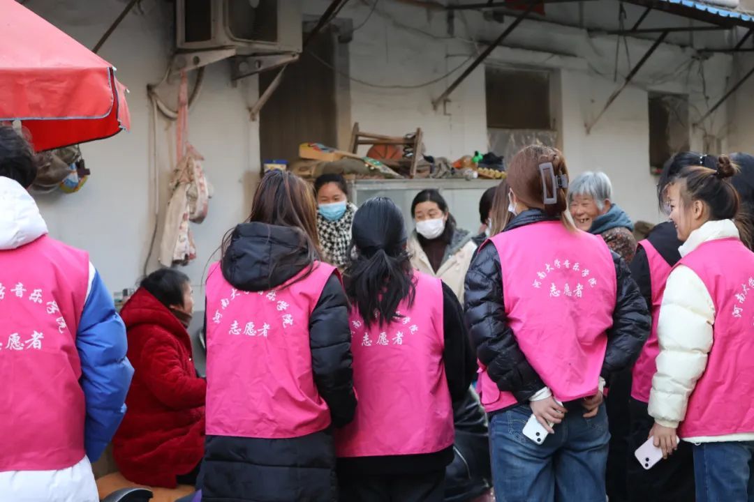 活动现场,志愿者们身穿粉红马甲打扫社区楼道内的卫生,同时协助超市人员搬运货物。为了能够让更多的老年参与到本次活动中来,志愿者们在社区工作者的带领下,去往老人们经常活动的场所,与老人们唠家常,叮嘱老人们要注意身体健康,提醒他们保持愉快的心情和良好的生活心态,老人们倍感亲切与温暖,现场气氛其乐融融。