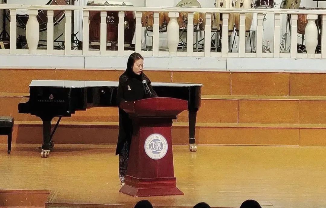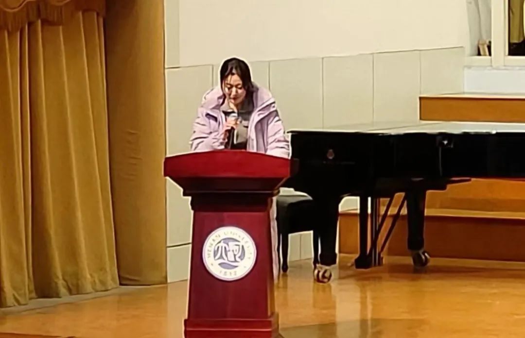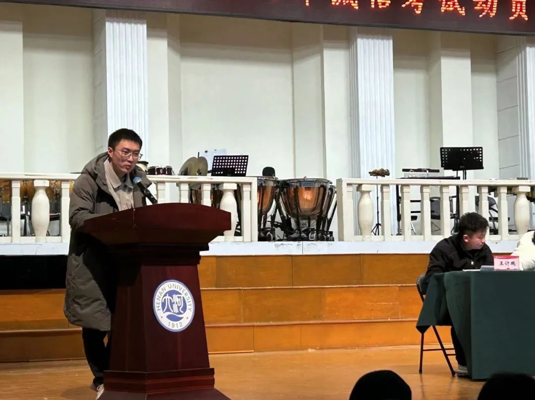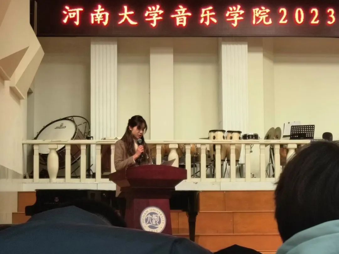 老生代表2022级齐晓彤同学向大家分享了期末考试的备考建议,号召大家考前做好复习,考试时诚实守信、拒绝作弊,让诚信常驻心中。新生代表2023级费雪儿同学进行发言,倡议同学们刻苦学习,诚信应考,用自己的辛勤汗水和真才实学取得优异的成绩。