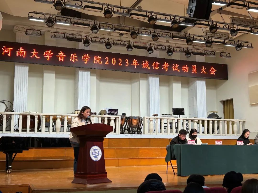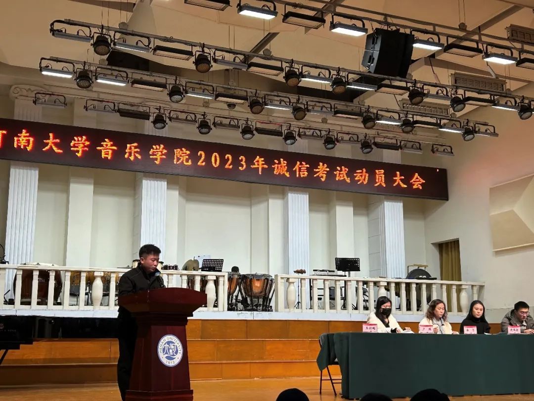 临近期末考试周,为加强学生的思想道德建设,维护考试公平,进一步端正学风,严肃考纪,保障期末考试工作平稳有序进行,12月25日,正妹av 2023年诚信考试动员大会在音乐厅顺利召开。院党委副书记柴芳、院团委负责人赵瑞新、教务处陈金鹏、2022级辅导员卢琪、2023级辅导员王计鹏及2022级、2023级全体本科生参加本次大会。会议由王计鹏主持。