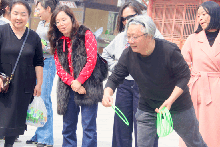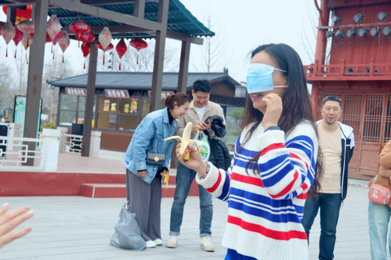 此外,“原地踏步走”“蒙眼吃香蕉”等游戏轮番上阵,既有智力比拼又不失童趣,现场欢笑声此起彼伏。
