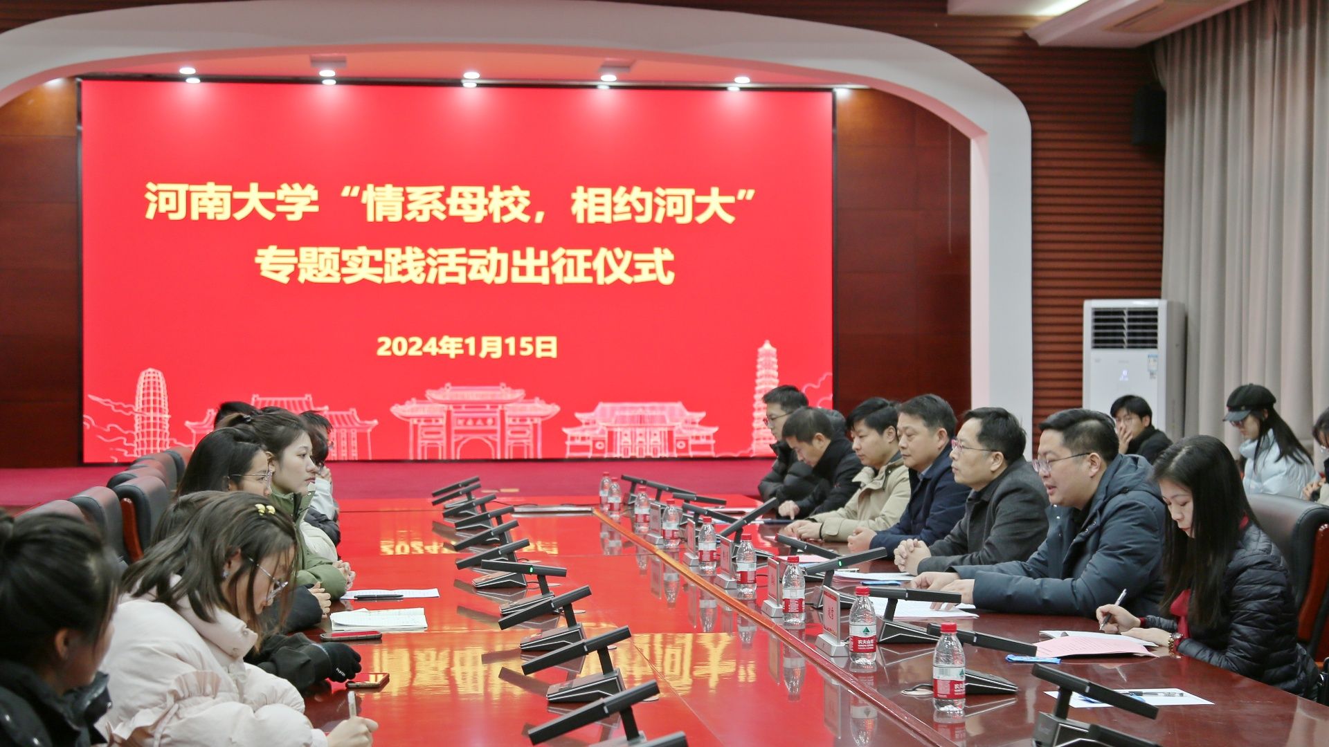 在明伦校区小礼堂举行2024年“情系母校,相约河大”在校生寒假返母校招生宣传专题实践活动出征仪式。校团委书记龚森、招生办公室主任樊小勇出席会议,校团委相关领导、招生办公室全体成员以及团队成员代表参加活动。