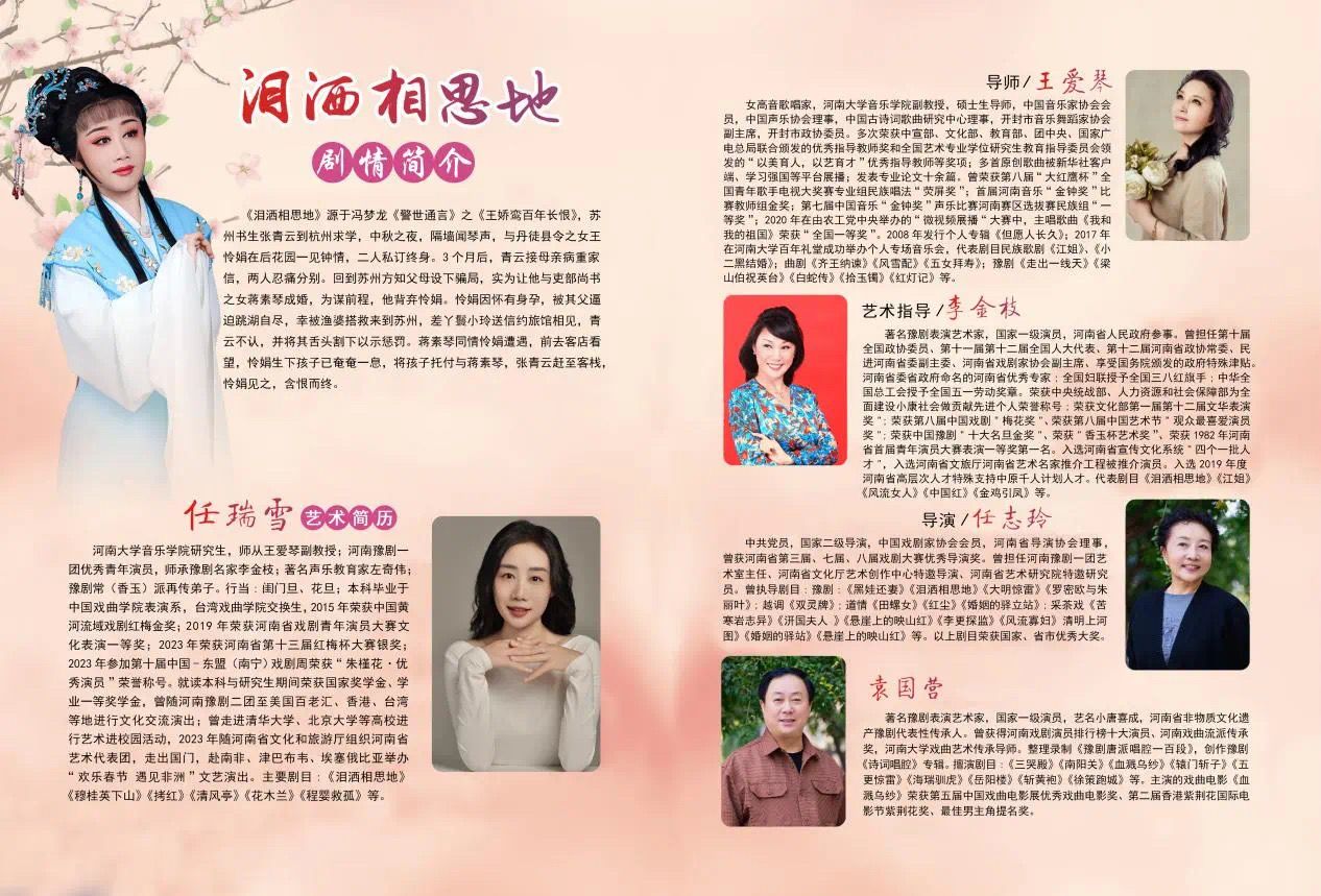古装豫剧《泪洒相思地》是河南豫剧一团久演不衰的优秀保留剧目,讲述了一个痴情女和负心汉的悲情故事。丹徒县令之女王怜娟与苏州书生张青云一见钟情,怀有身孕。后张青云为谋前程,背弃怜娟,与吏部尚书之女蒋素琴成婚。怜娟被其父逼迫跳湖自尽,幸被鱼婆搭救,到苏州寻夫,差侍女小玲送信约见。气急败坏的张青云不仅不认,还凶残地将小玲舌头割下。蒋素琴同情怜娟遭遇,前往客栈看望。此时,怜娟分娩,奄奄一息,将孩子托付与蒋素琴,含恨而终。