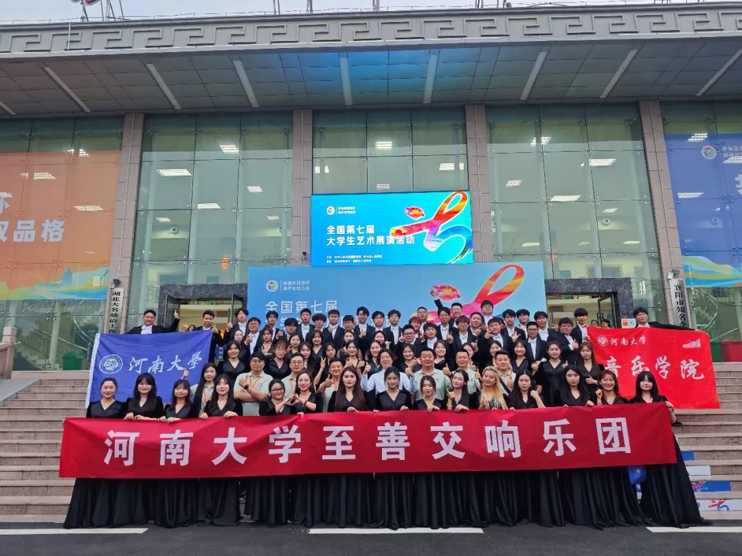 全国大学生艺术展演活动是全国高校美育工作成果的集中呈现的一次盛会,体现了“以美育人、以美化人、以美培元、立德树人”的核心价值理念。自2005年开始,每三年举办一届。本届大艺展为期7天,吸引了来自全国各省、自治区、直辖市和新疆生产建设兵团,以及香港、澳门的7400余名师生参加,进行了声乐、器乐、舞蹈、戏剧、朗诵五大艺术表演类的14场展演活动;55个大学生艺术实践工作坊参展,现场展示了286件艺术作品。正妹av 参演师生在学校的倾力指导下积极备演,用河大之声献礼中华人民共和国成立75周年,展现了正妹av 学子优秀的艺术素养和深厚的家国情怀,彰显着河大人朝气蓬勃的青春风采和积极向上的精神风貌。