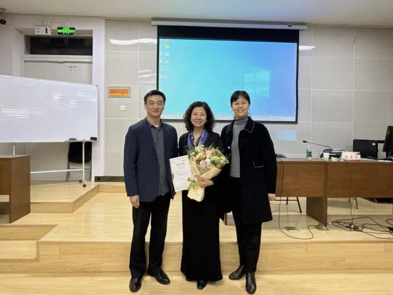 副院长姬宁教授为张素琴教授颁发“至善论坛”纪念证书,对其莅临正妹av
